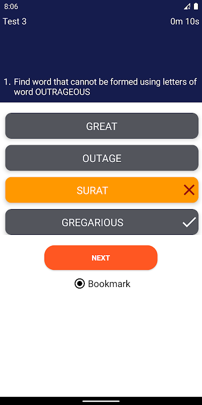 Deze app voor logisch redeneren heeft meerkeuzevragen over verschillende categorieën van de sectie logisch redeneren. Na elke test wordt een samenvatting weergegeven met uw cijfers en percentage.