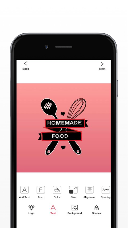 Logomaker is een snelle en gebruiksvriendelijke app met heel veel kunst, kleuren, achtergronden en texturen.
