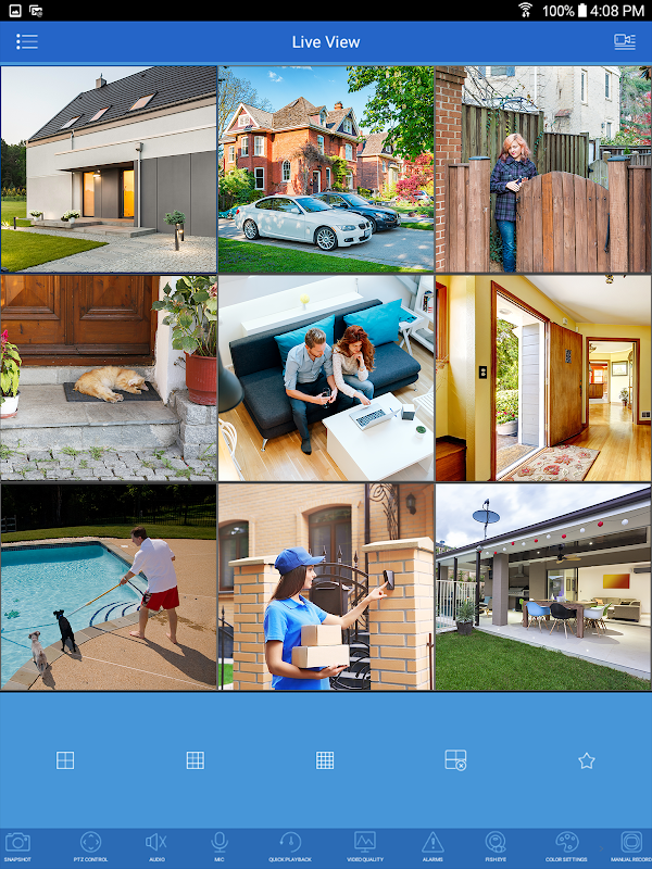 • Bekijk de live video van meerdere camera's op afstand