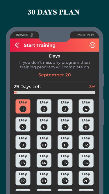 - Abs workout plans with 3 difficulty levels (easy, medium, hard) designed by experts.