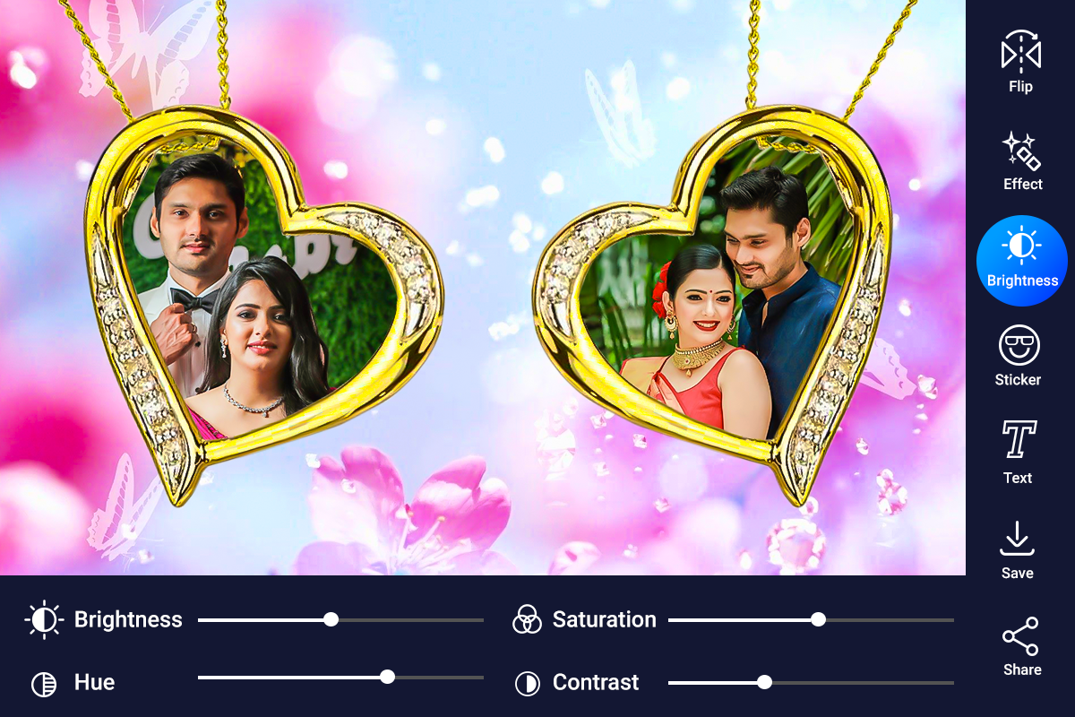Pas je foto's aan met deze geweldige app en deel ze direct met je liefdespartner, familie en je vrienden. Kies gewoon afbeeldingen uit de galerij of maak een foto van de camera, selecteer het medaillon uit een prachtige verzameling medaillekaders en pas beide afbeeldingen in het frame dienovereenkomstig aan. Voeg bovendien prachtige tekst toe aan foto's van een paar en pas de tekst naar wens aan.