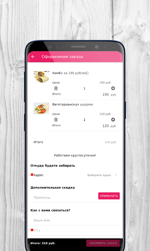 Заказать вкусную еду просто и удобно через приложение – несколько кликов и уже через 15 минут Вы сможете забрать свой заказ в любой удобной точке самовывоза! Вам не придется ожидать в очереди свой заказ!