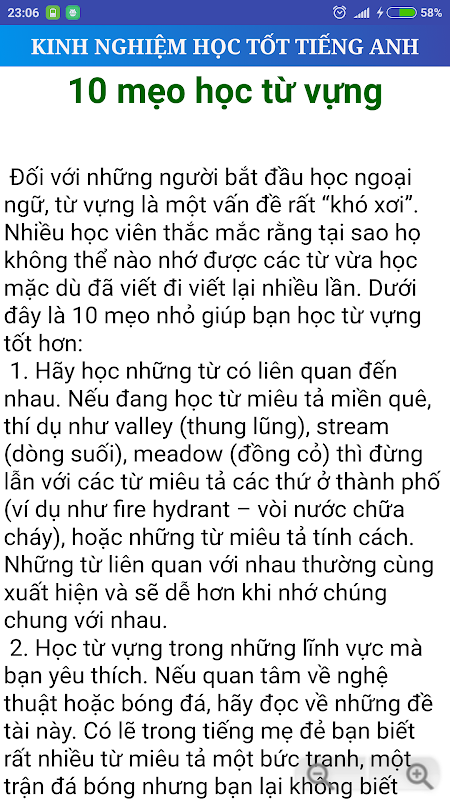 - Toepassing om ervaringen te synthetiseren en tips om goed Engels te leren. U kunt deelnemen aan de Engelse test om uw kennis te testen.