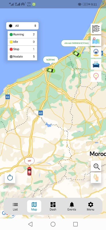 Ma-GPS voertuigvolgapp met kaart- en rapportagesoftware.