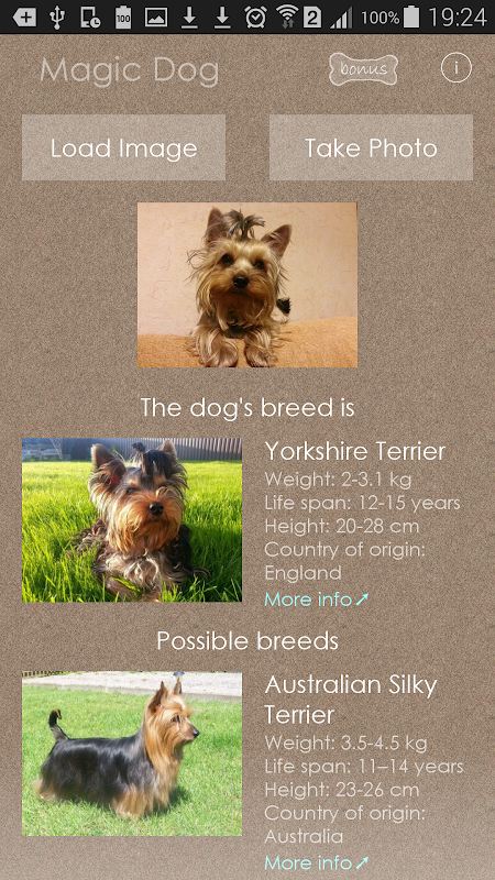 MagicDog uses a unique artificial intelligence software. Thanks to it you can now always carry an automatic breed-identifier with you.