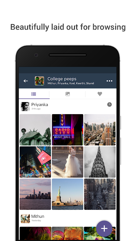 1. Create a group with friends who you want to share photos with (You will be added to a group automatically if you joined from a friend's invite).