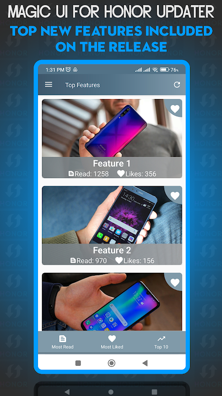 You can easily update Magic UI version and upgrade apps. Fully equipped Magic UI upgrade app for Honor users.