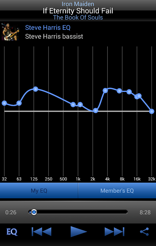 Naast het gebruik van EQ van de IRON MAIDEN lid, kunt u ook een naam geven en opslaan van uw eigen aangepaste EQ-presets.