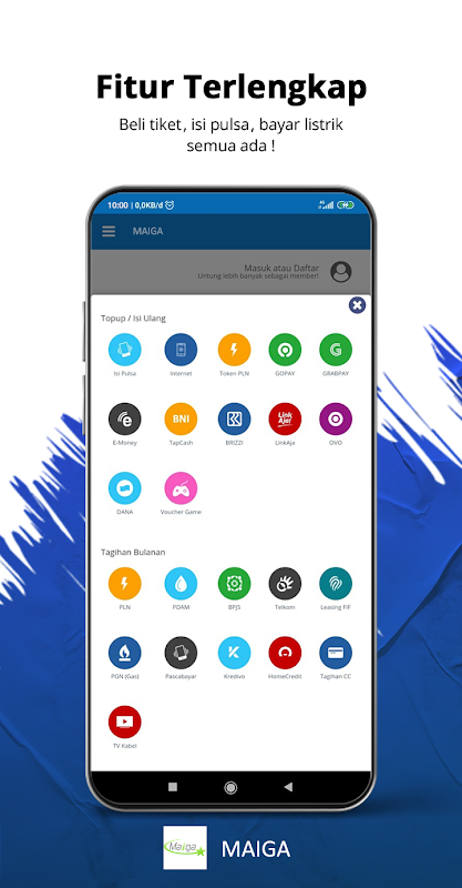 - Betaal PPOB-rekeningen (maandelijkse PLN, PLN-tokens, TELKOM Group, PGN, BPJS Health, PDAM, leasing, postpaidkaarten, gamevouchers, kabel-tv)