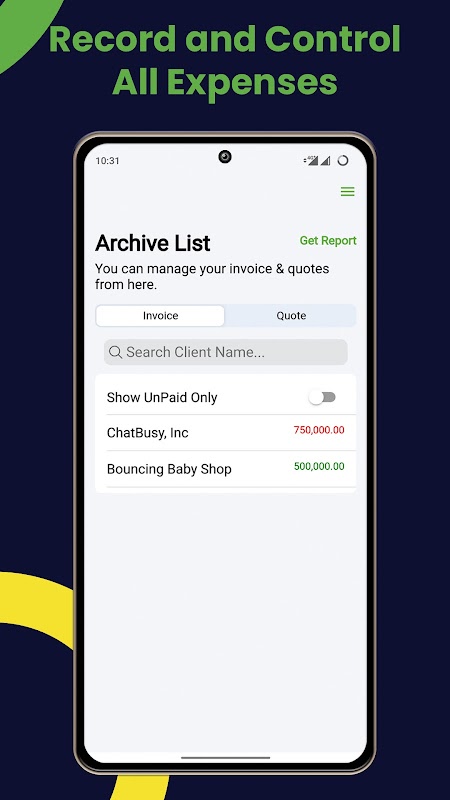 • Al uw openstaande en achterstallige facturen worden weergegeven voor eenvoudig cashflowbeheer.