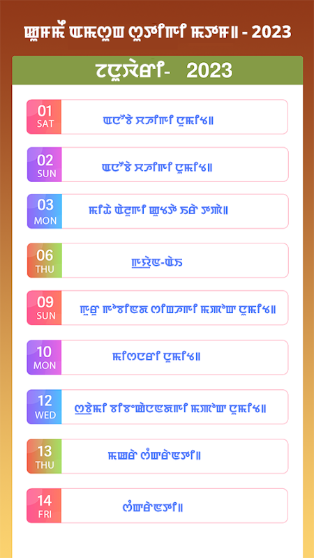 Manipuri Calendar 2023 ꯄꯟꯆꯥꯡ꯫ 1.2