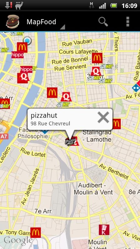 Les enseignes sont stockés dans l'application.. Vous pouvez donc utiliser MapFood en offline pour trouver de la junkfood !