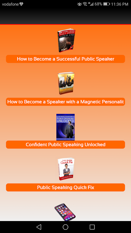 De e-books die zijn opgenomen in de app voor het beheersen van spreken in het openbaar zijn:
