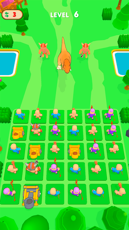 De game bevat een levendige en kleurrijke wereld waarin spelers op een epische reis gaan om hun koninkrijk te redden van de dreigende vernietiging. Om te slagen, moeten spelers drie of meer identieke krijgers matchen om ze samen te voegen tot een sterkere eenheid met unieke vaardigheden en vaardigheden. Naarmate spelers door de levels vorderen, komen ze steeds moeilijkere vijanden tegen, waaronder verschillende dinosaurussen met verschillende sterke en zwakke punten.