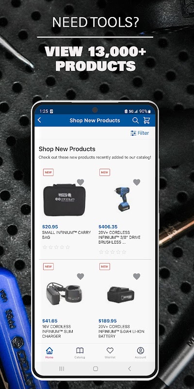 - Zit u midden in een baan en realiseert u zich dat u iets mist? Koop snel en eenvoudig het gereedschap dat u nodig hebt en bekijk de realtime voorraad van gereedschapswagens zonder te wachten op uw volgende vrachtwagenbezoek.