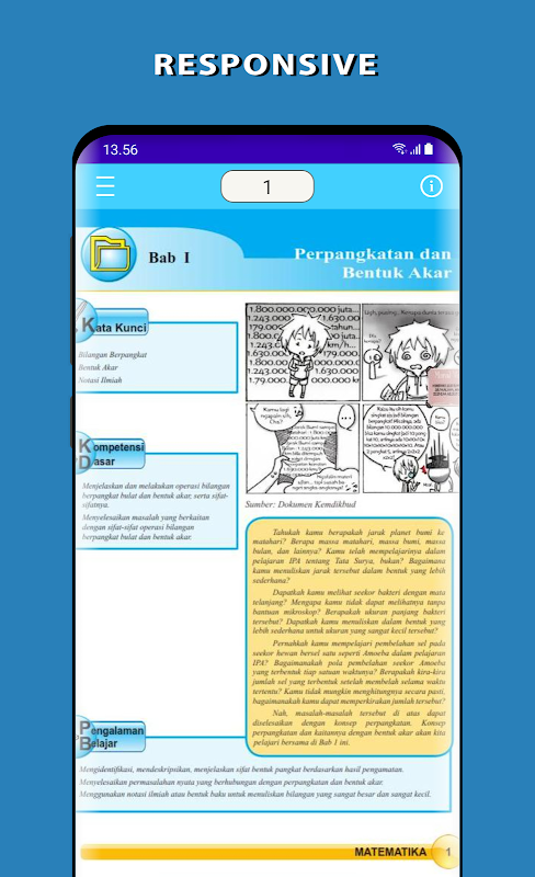 Het BSE-curriculum 2013 is een gratis boek waarvan het auteursrecht eigendom is van het Ministerie van Onderwijs en Cultuur (Kemendikbud) en dat gratis onder het publiek kan worden verspreid. Materiaal afkomstig van kemdikbud.go.id. De applicatie helpt bij het verstrekken van leermiddelen, maar vertegenwoordigt niet het ministerie van Onderwijs en Cultuur.