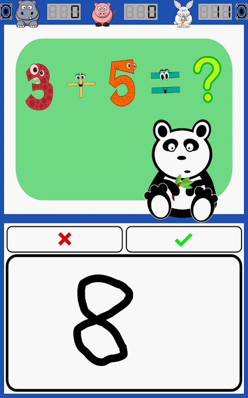 ★ Handschrift: schrijf direct op het scherm met uw vinger of stylus en Math Panda zal zijn ultramoderne neurologische netwerk HandWriting Recognition (HWR) gebruiken om uw antwoord te lezen!