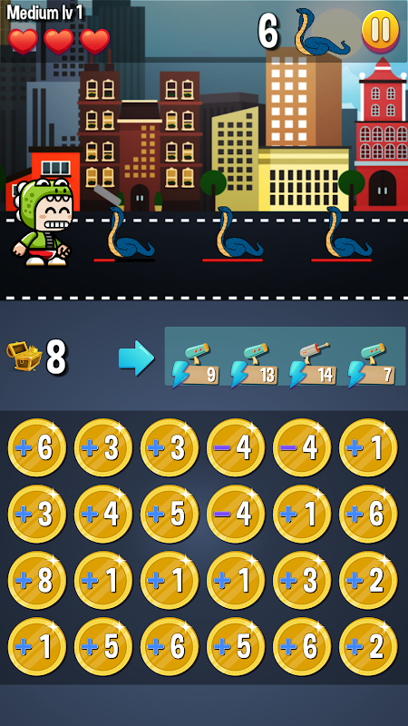 Jangan pantang menyerah! Semakin cepat menjumlahkan koin, semakin cepat mendapat senjata, semakin cepat juga memberantas musuh.