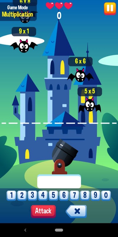 een leuk spel dat je helpt je concentratie te verhogen, de vleermuizen beginnen te dalen en je moet de wiskundige vergelijkingen oplossen om de vleermuis te schieten, je hebt drie pogingen als de vleermuis de lijn overschrijdt verlies je één poging en wanneer je drie pogingen verliest je speelt het spel opnieuw, hoe meer vleermuizen je doodt, hoe meer het spel moeilijker en sneller wordt, het spel is educatief en leuk en helpt je wiskunde te leren en je concentratie te versterken, download het spel gratis op Google Play en geniet ervan.
