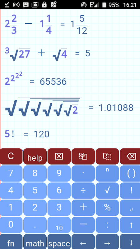 De wiskundige calculator ondersteunt: