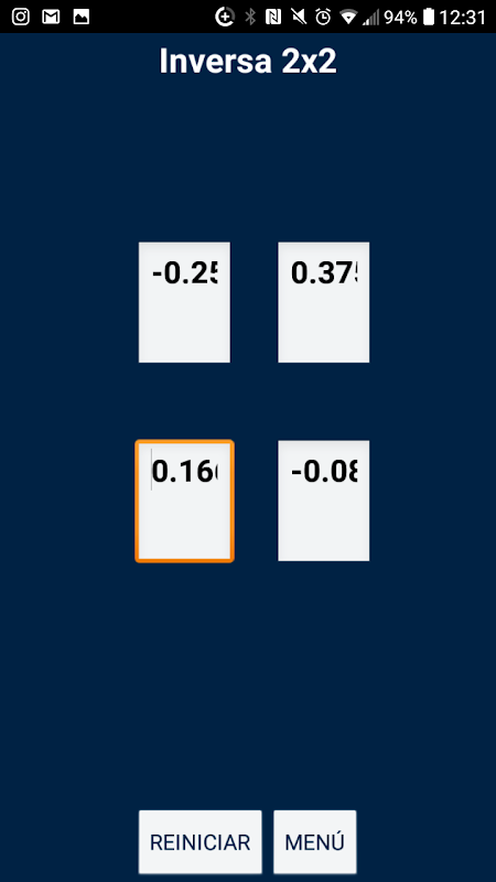 Met de Matrices-applicatie kunt u verschillende bereiken van uw mobiele telefoon berekenen, inclusief bereik (2x2), (2x3), (3x2), (3x3), (3x4), (4x3) en (4x4).
