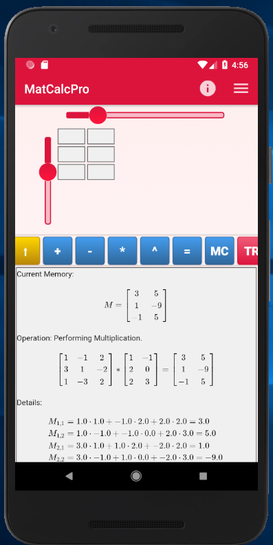 MatCalc is een eenvoudige matrixcalculator. Het heeft een gemakkelijke en elegante matrixinvoer en maakt nauwkeurige en analytische algebraïsche berekeningen