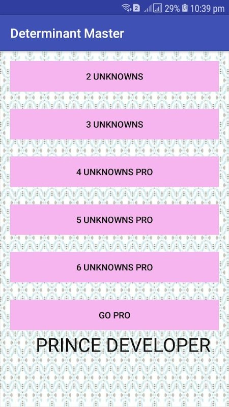 Stap voor stap oplossing met mogelijkheid van het invoeren van breuken en uitdrukkingen. Dit is een Determinant Master Solver app, Dit is een freeware applicatie en kan determinanten van de systemen te berekenen tot 2 bij 2 en pro versie van deze app ondersteunt tot 6 op 6-systeem en is beschikbaar dus dit eerst proberen en download pro. Geniet Determinant Master. Dank je.