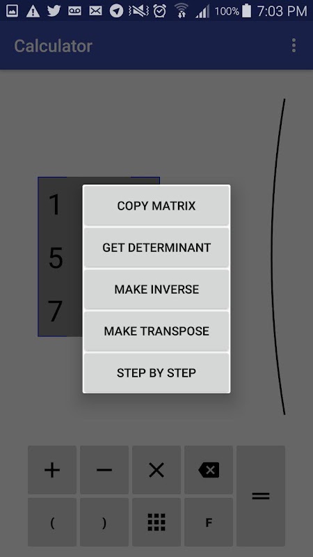 Een hulpmiddel dat matrix rekenmachine en stapsgewijs analysator omvat.