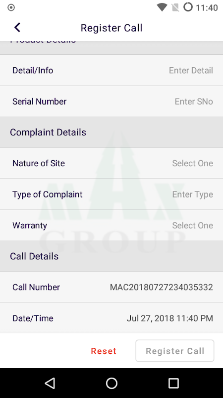 Max Group's, Service Call Panel.