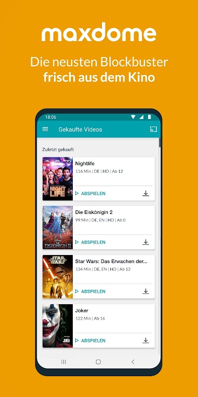 Die maxdome App ist natürlich kostenlos. Einfach herunterladen und Filme erleben.