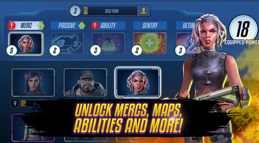 Tons of upgradeable mercs, abilities, and sentries add incredible depth to in-game strategy.