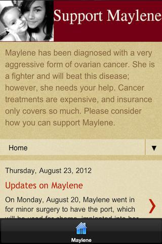Maylene has been diagnosed with a very aggressive form of ovarian cancer. She is a fighter and will beat this disease; however, she needs your help. Cancer treatments are expensive, and insurance only covers so much. Please consider how you can support Maylene. You can read her story here and also make a donation through the application. Thank you for your support.