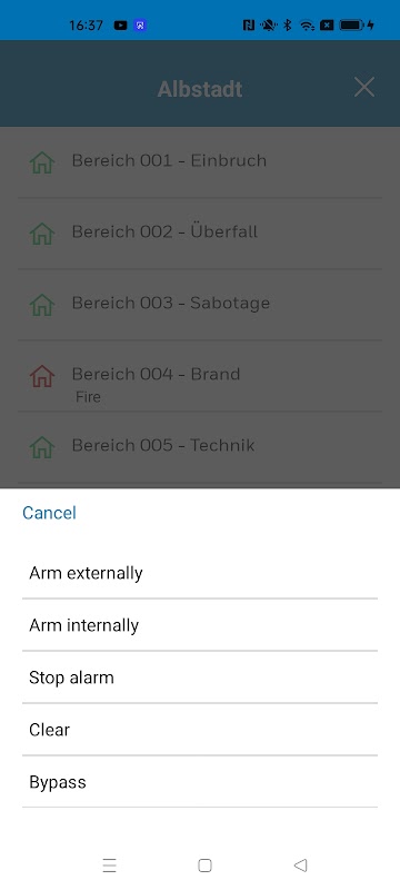 • Gebiedsoverzicht van alle gebieden ingeschakeld voor app-bediening