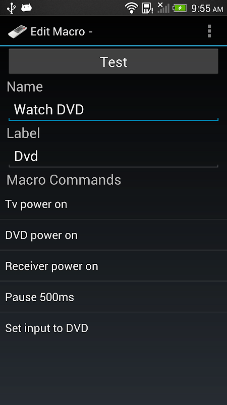 - Once the IR code is received an editing testing screen will open where you can test the programmed button