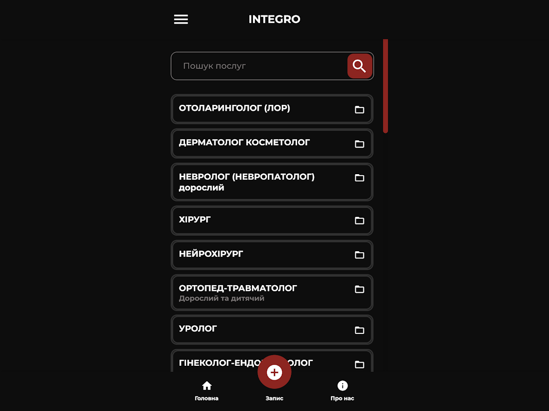 Medisch Centrum "INTEGRO" is een moderne multidisciplinaire medische kliniek waar we kinderen en volwassenen behandelen. Het centrum accepteert niet alleen smalle specialisten, maar ook huisartsen, kinderartsen met de mogelijkheid om een verklaring af te sluiten. Dit is een mobiele applicatie waarin u zich op een voor u geschikte dag en tijd kunt aanmelden voor een consult bij een arts.