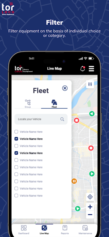 MCL RMS mobiele app is een real-time applicatie voor het volgen van wagenparken