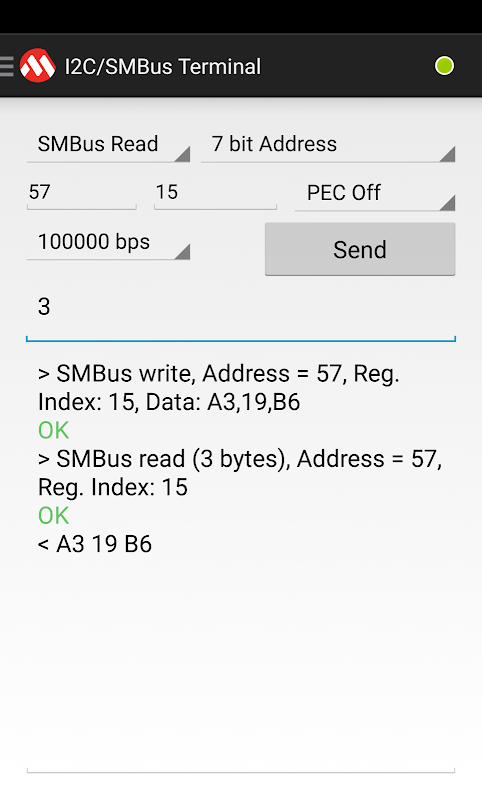 Turn your device into an I2C/SMBus terminal. The app allows you to interface with an MCP2221 and easily communicate with I2C/SMBus slaves.