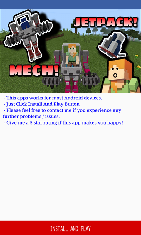Deze applicatie maakt het gemakkelijk voor u om Mechs en Jetpacks toe te voegen aan MCPE