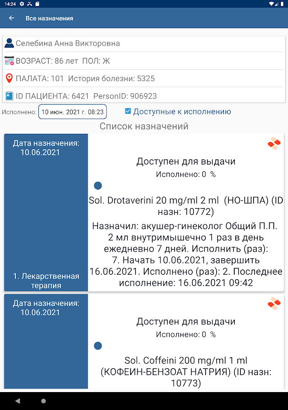 - Bekijk medicijnen voor de geselecteerde patiënt