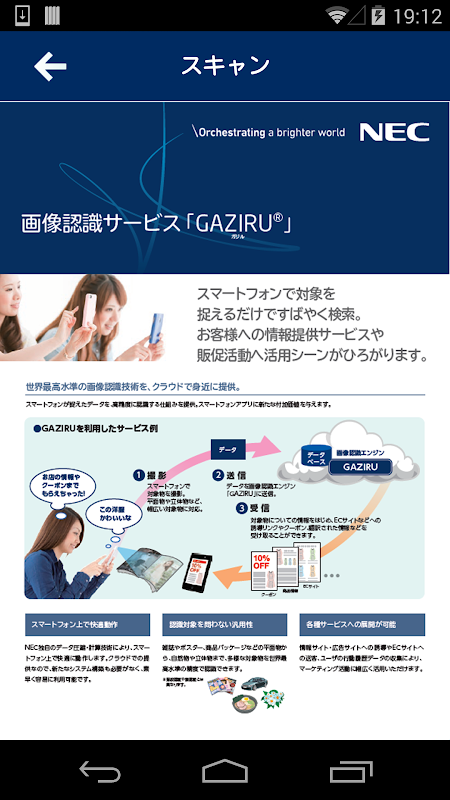 「MediaGarage」とはNECが独自に開発した世界最高レベルの画像認識技術を利用したスマートフォン向けのアプリです。