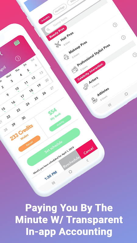 Klanten kunnen via het netwerk een professionele service, begeleiding, tips of advies krijgen tijdens een "één op één" videovergadering. Meet verbindt de vergadering automatisch en verbreekt de verbinding, waardoor een veilige verbinding voor alle werkende professionals en hun klanten mogelijk wordt. Ontmoet klanten kunnen professionals op aanvraag vinden op industrie, hashtags, mensen en niche. Gebruik het om contact te leggen met influencers of geef je carrière een boost en krijg diensten van geweldige professionals in je branche.