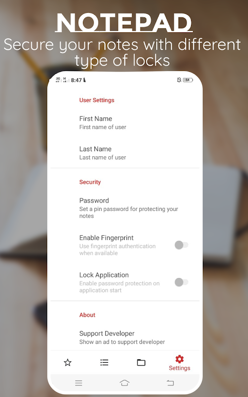 - Stel een wachtwoordpin of vingerafdruk in om notities of de app te vergrendelen
