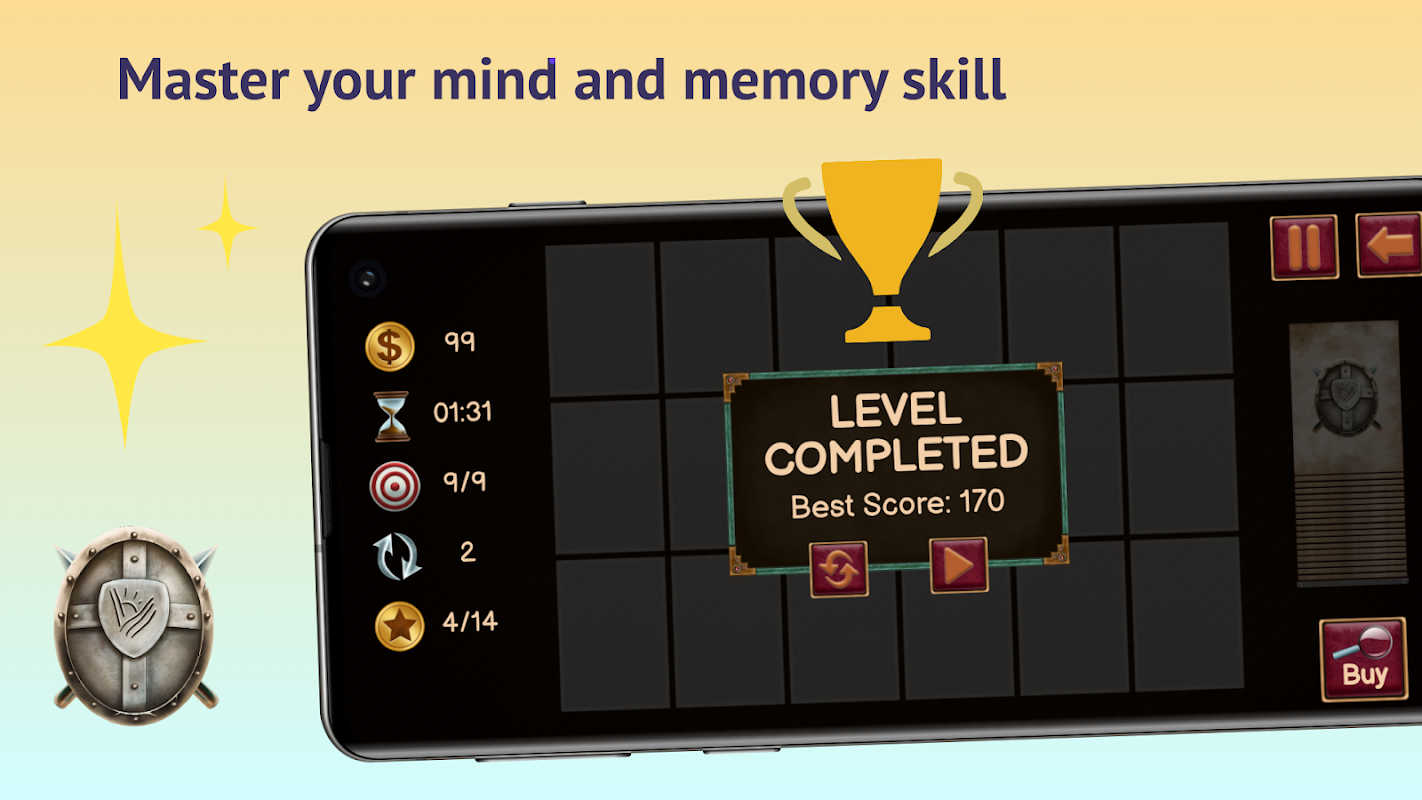 Stap in de betoverende wereld van Memory Match Pair RPG Cards, een boeiend puzzelspel voor het matchen van paren, ontworpen om je geheugenvaardigheden uit te dagen en te verbeteren. Draai de kaarten om en vind twee overeenkomende symbolen, maar pas op: onze kaarten met RPG-thema zijn versierd met moeilijk te onthouden unieke symbolen die je cognitieve vaardigheden tot het uiterste zullen testen.