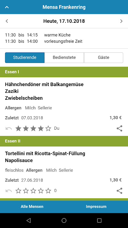 Helaas hebben wij geen invloed op wat er op het bord of dienblad terechtkomt. De gegevens worden rechtstreeks van de kantinewebsites gehaald. Als er een fout optreedt, schrijf ons dan een e-mail - wij zorgen ervoor!