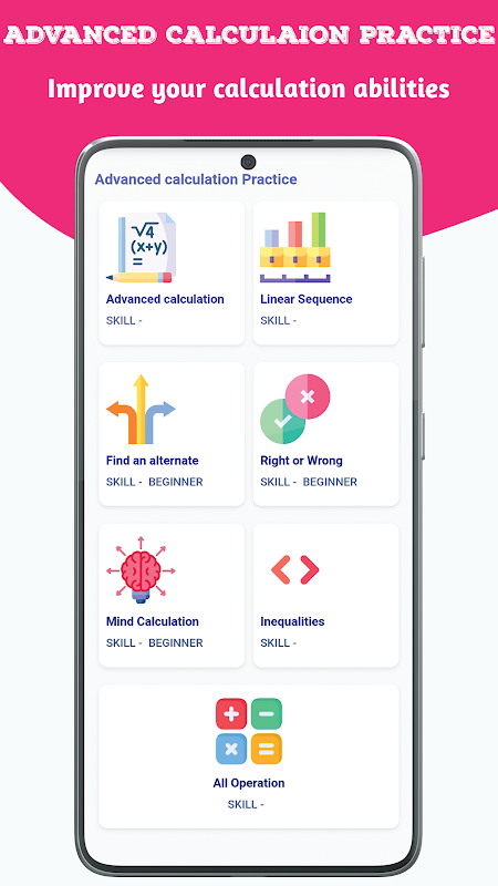 De app Mental Calculation Training heeft tot doel uw rekenvaardigheden te verbeteren door een reeks boeiende oefeningen en uitdagingen aan te bieden. Het doel is om uw snelheid en nauwkeurigheid bij het uitvoeren van mentale berekeningen te verbeteren, waardoor het geschikt wordt voor gebruikers van alle leeftijden en vaardigheidsniveaus. Deze app is een leuke en effectieve manier om je wiskundige vaardigheden te verbeteren, of je nu een student, professional of wiskundeliefhebber bent.