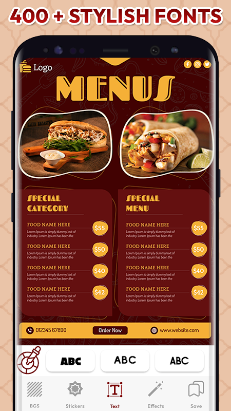 - Zeer goede app voor het maken van menu's voor restaurant, koffie, bar, winkelmenu en maak een sjabloon voor een evenement