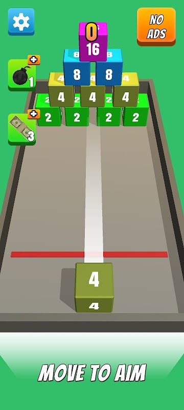 ⭐. Schiet en raak het blok met dezelfde kleur en hetzelfde nummer, ze versmelten tot één blok. !
