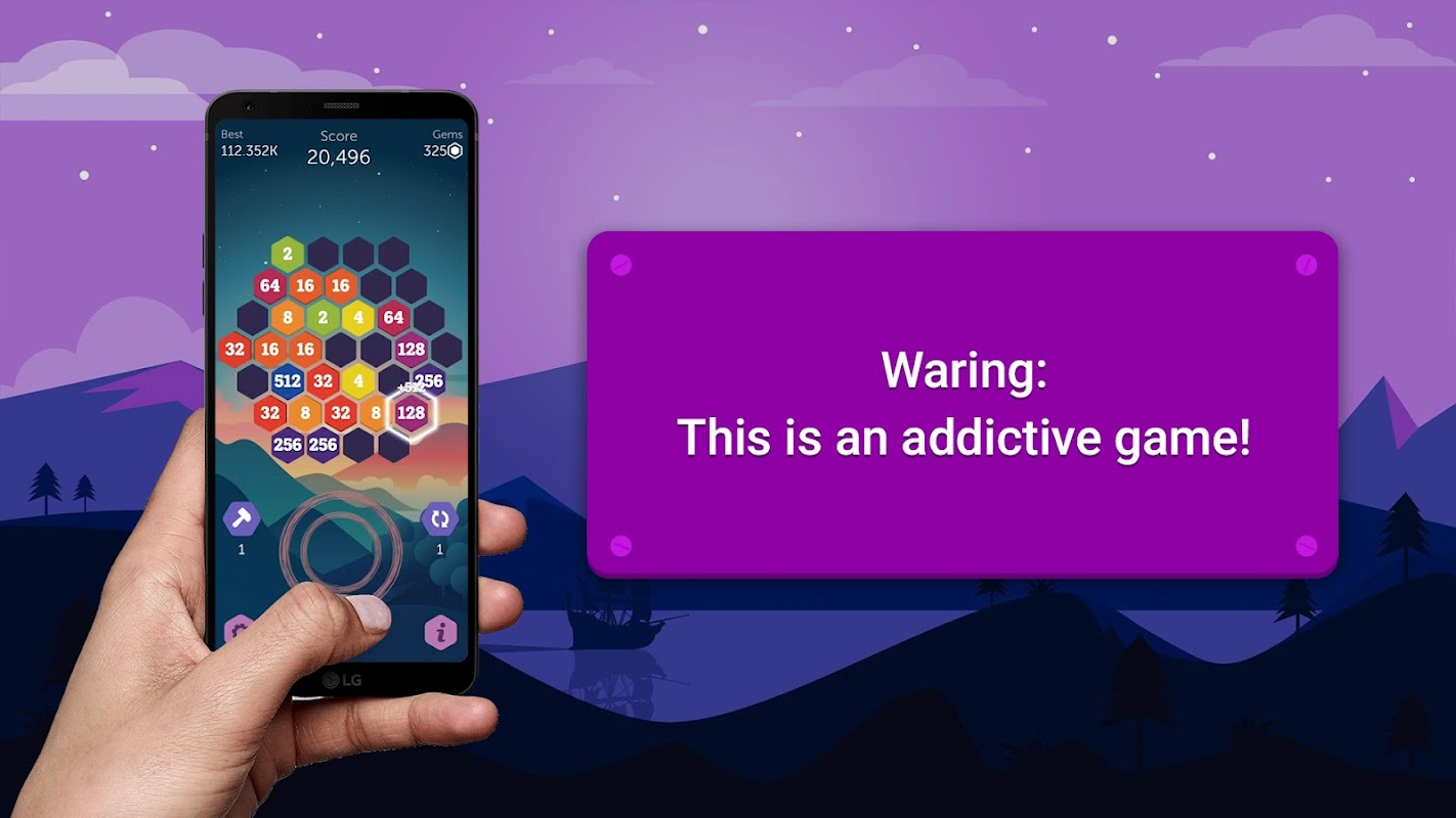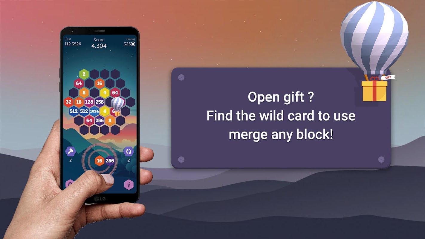 Sleep gewoon de Hexa-blokken naar het bord en voeg het getal samen tot 2048. De regel is simpel: alles moet passen!