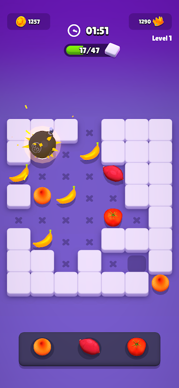 Het is het meest bevredigende en eenvoudig te spelen spel ooit! Je zult blij zijn elke keer dat je een blok opblaast en het bord leegmaakt. Er is natuurlijk wat strategie voor nodig! Je moet opletten op welk punt je de items plaatst.