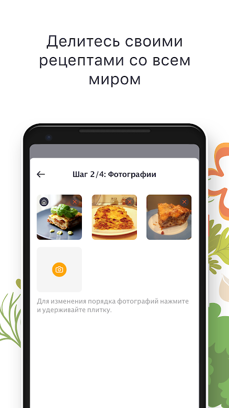 Просматривайте фото и видео рецептов, пошаговые инструкции, создавайте свои собственные кулинарные шедевры и кушайте вкусную, а главное — разнообразную пищу каждый день! Попробуйте скачать наше приложение прямо сейчас и внесите в свое ежедневное меню новые кулинарные рецепты! Готовьте вкусно и быстро на скорую руку! Наше приложение — это лучше, чем кулинарная книга на русском без интернета (офлайн).